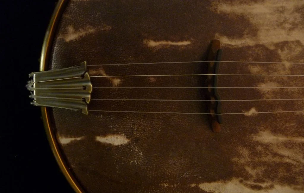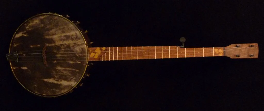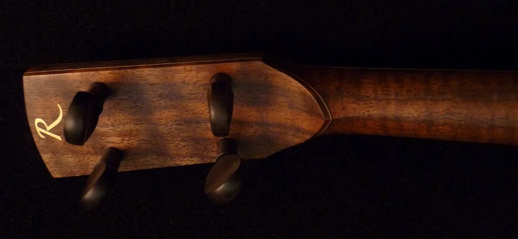 Mesquite fingerboard; Black walnut peghead, heel and rim overlays