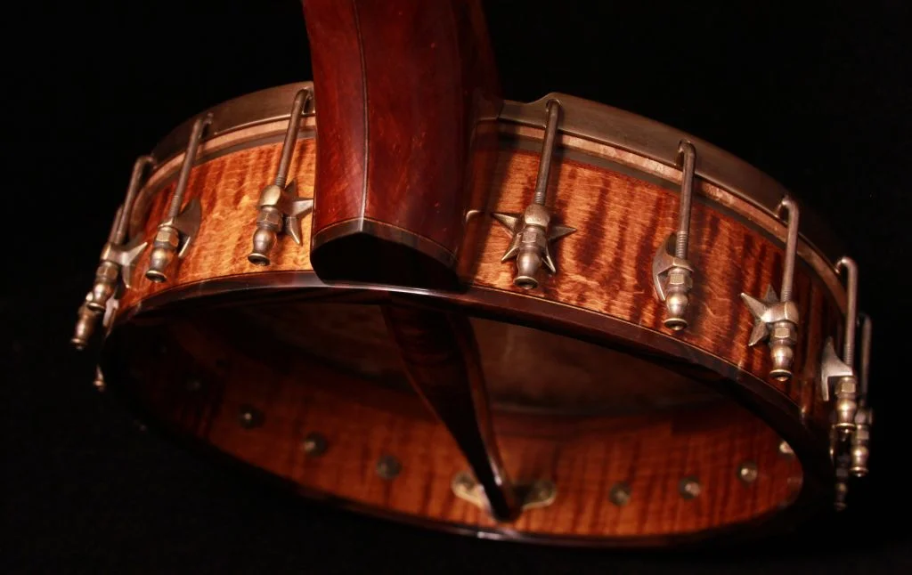 Macassar ebony fingerboard, peghead, heel and rim overlays