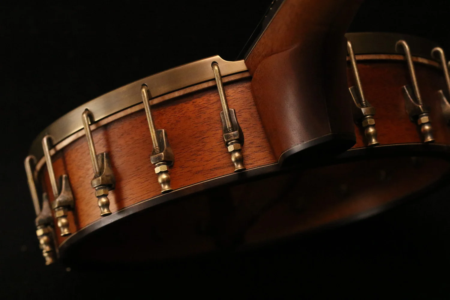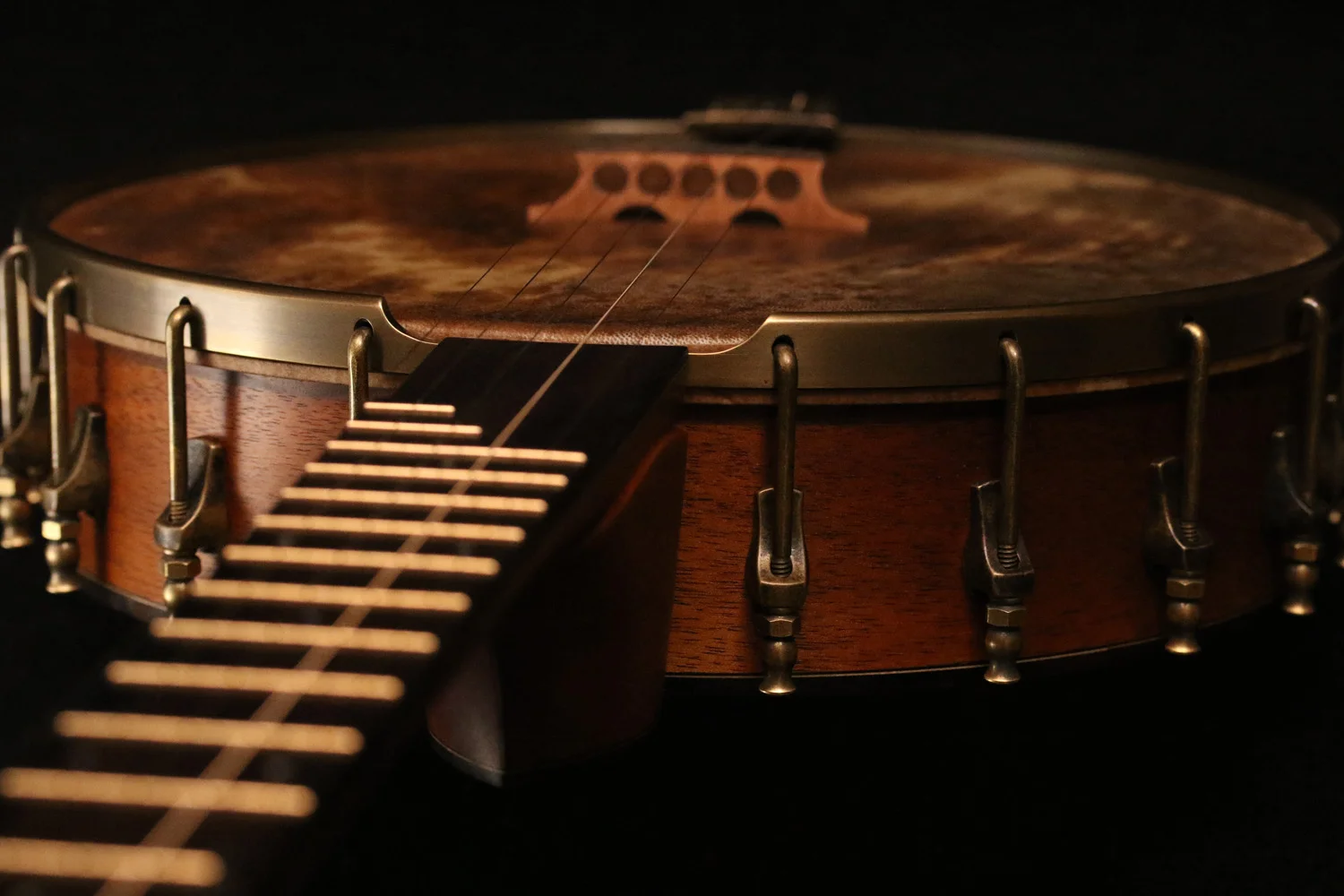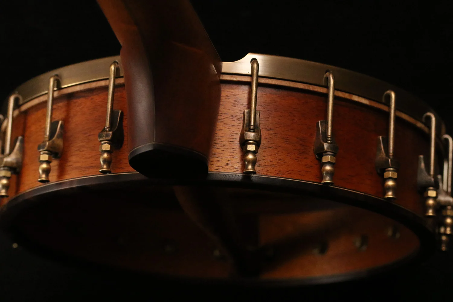 Out of the Ashes Banjo made with fire salvaged woods and hardware (L-shoes, tailpieces, end brackets, interior dowel stick washers)