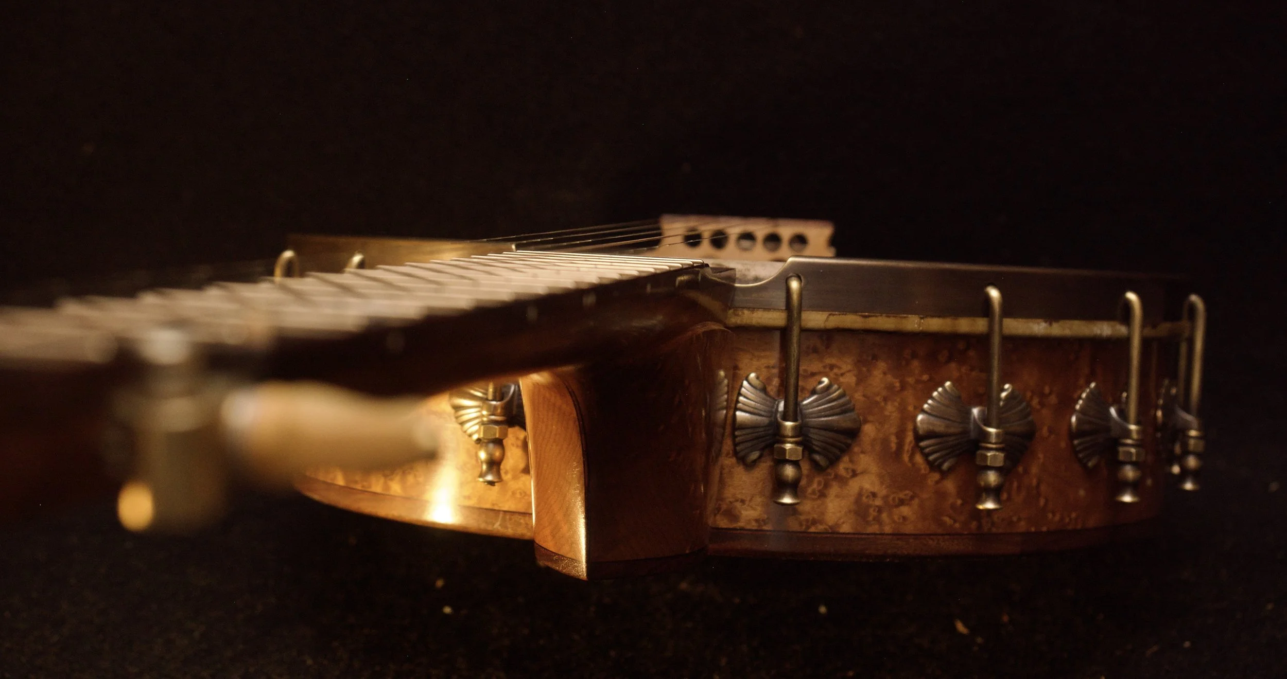 HC Dobson-style peghead with Texas ebony back peghead overlay