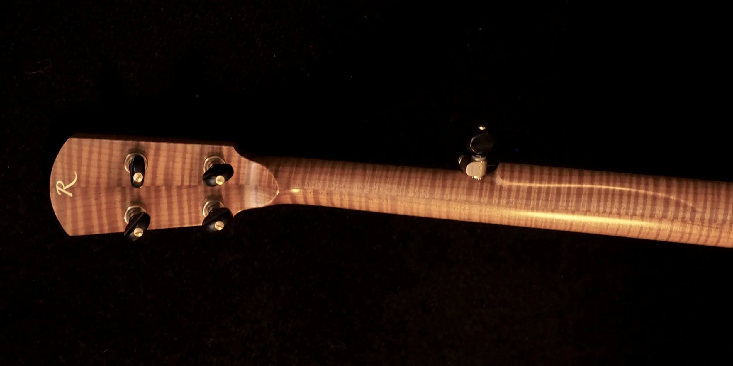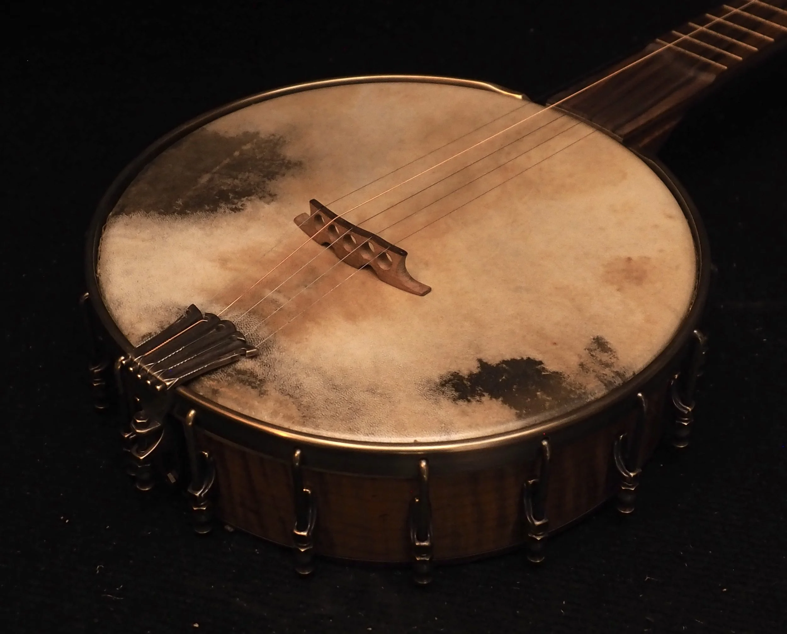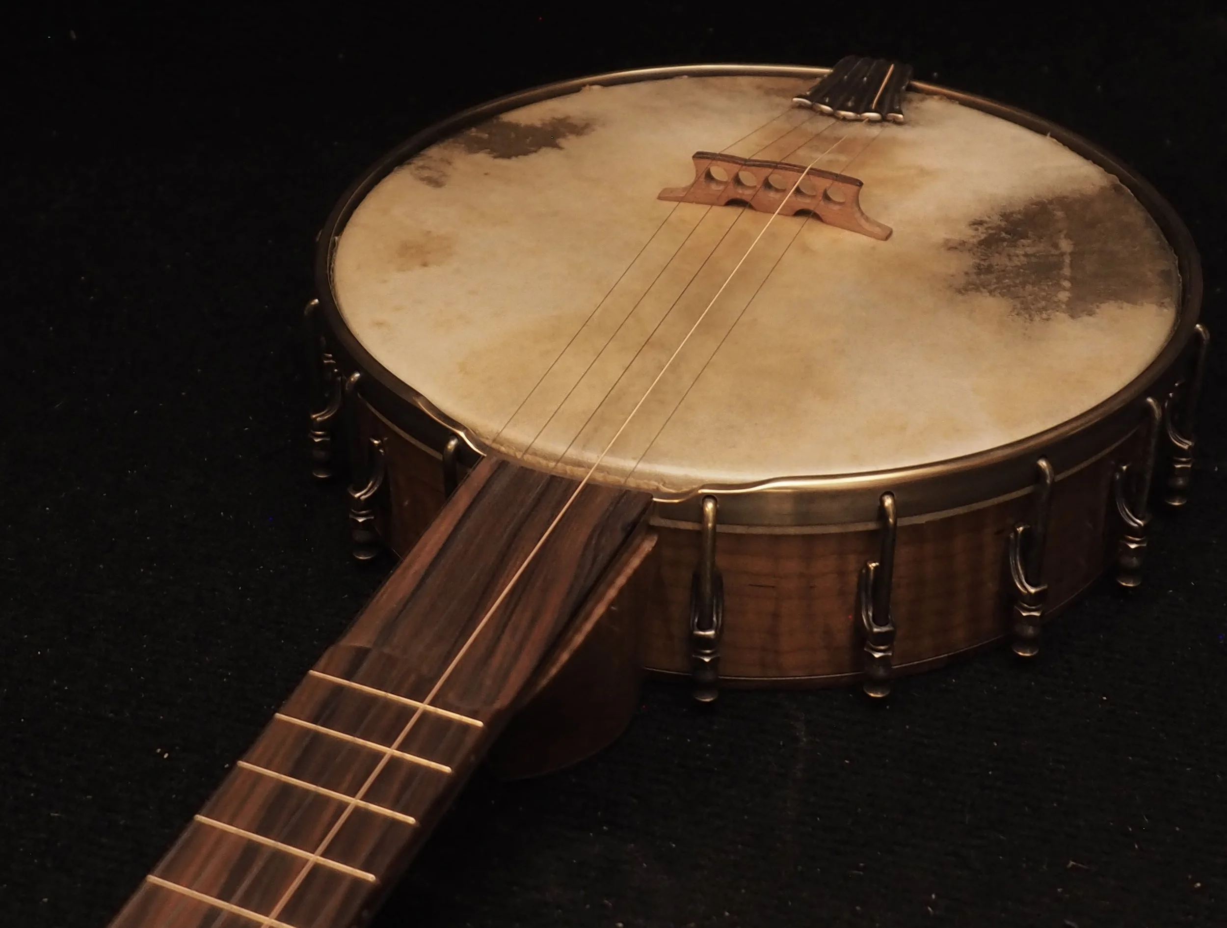 Figured torrefied maple neck and 11” rimDobson tone ringPau ferro trimJ3 pegheadWave scoop at the 15th fretDeco cast bronze shoesShell cast bronze tailpieceOiled goatskin headLacquer finishAmeritage case